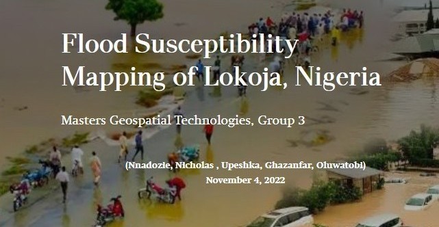 Flooding is a natural disaster that can cause significant damage to property and infrastructure, as well as pose a threat to human life. In recent years, there has been an increasing interest in using geospatial technologies to assess flood susceptibility in urban areas. This blog post presents a flood susceptibility mapping project for Lokoja, Nigeria, which was carried out by a group of students from the Erasmus Masters in Geospatial Technologies program at UJI, Castellon de la Plana, Spain. The project aimed to identify areas in Lokoja that are most susceptible to flooding, using a combination of remote sensing data and GIS analysis.